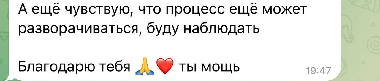 Практика проходит так, чтобы каждый участник мог на себе почувствовать работу с энергией или даже увидеть образы. После проделанной работы онлайн я обязательно делюсь тем, что я увидела и с чем работала, передаю важные сообщения от поля и подсвечиваю, что делать дальше.